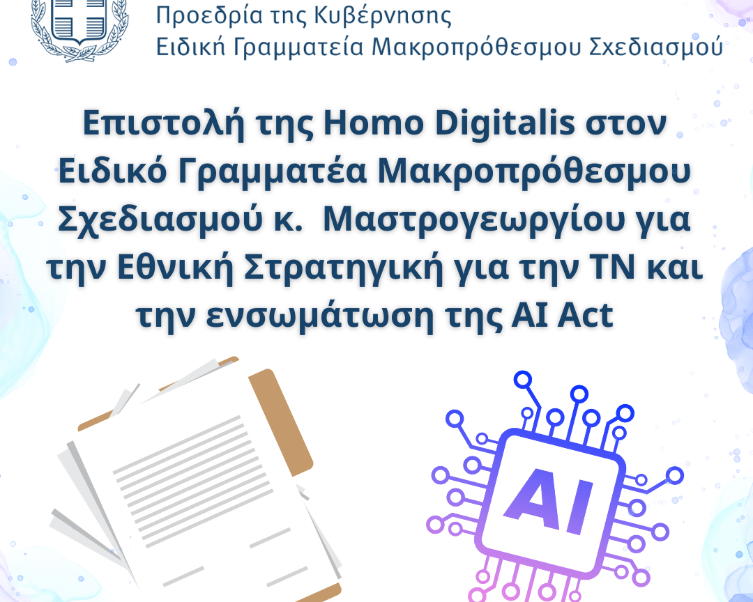 Όσο λοιπόν οι νέες τεχνολογίες συνεχίζουν να διαμορφώνουν τον τρόπο που ζούμε, εργαζόμαστε και αλληλεπιδρούμε μεταξύ μας, τόσο η Homo Digitalis θα συνεχίζει να δρα στρατηγικά, ώστε ο σεβασμός των δικαιωμάτων μας να βρίσκεται στο επίκεντρο της προσοχής.