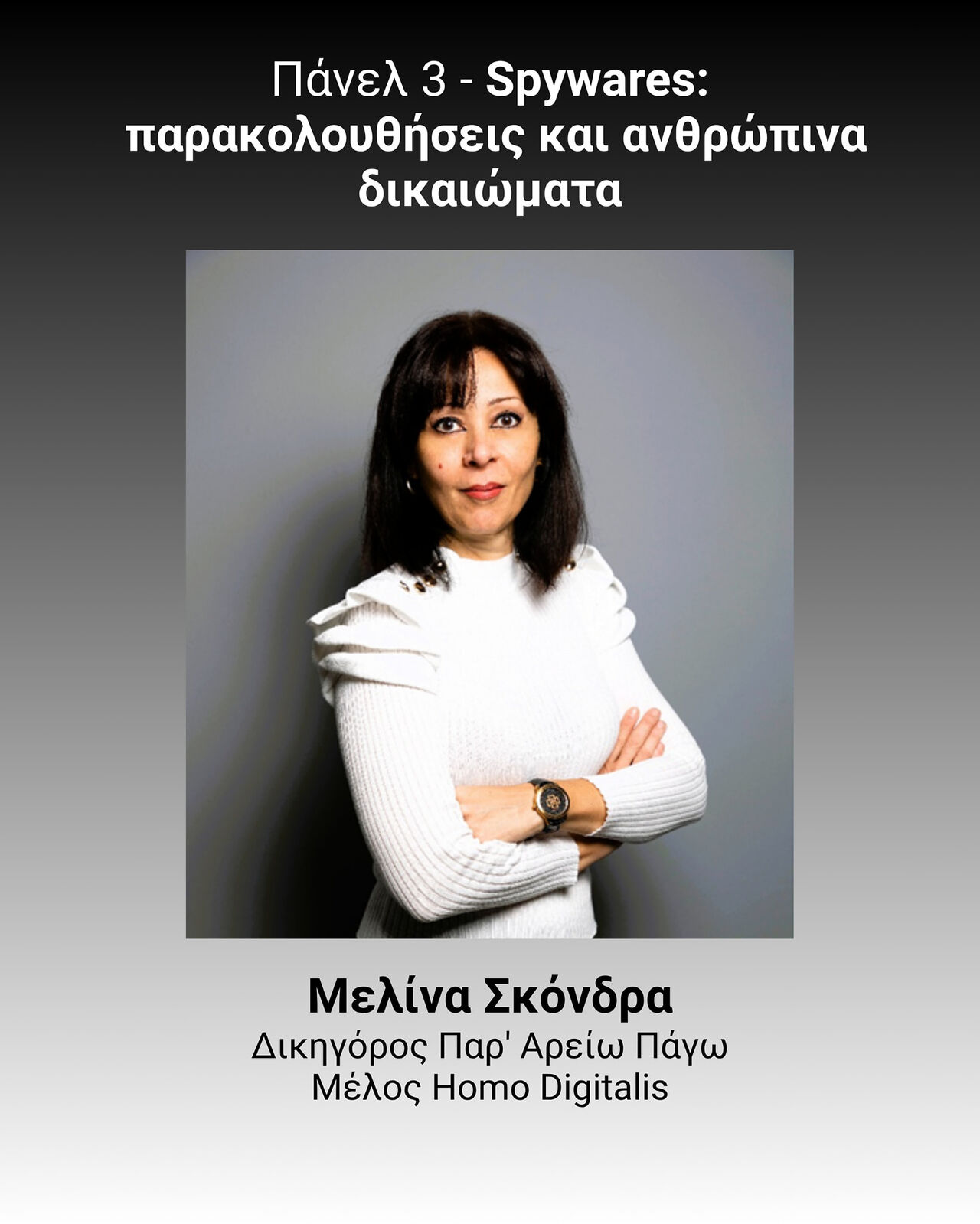 On Friday, November 21, Homo Digitalis was represented by our member and Lawyer admitted to the Supreme Court, Melina Skondra, who delivered an outstanding contribution in the third panel of the conference “The Rule of Law Today in Greece and Europe,” on the topic: Spyware, surveillance, and human rights.