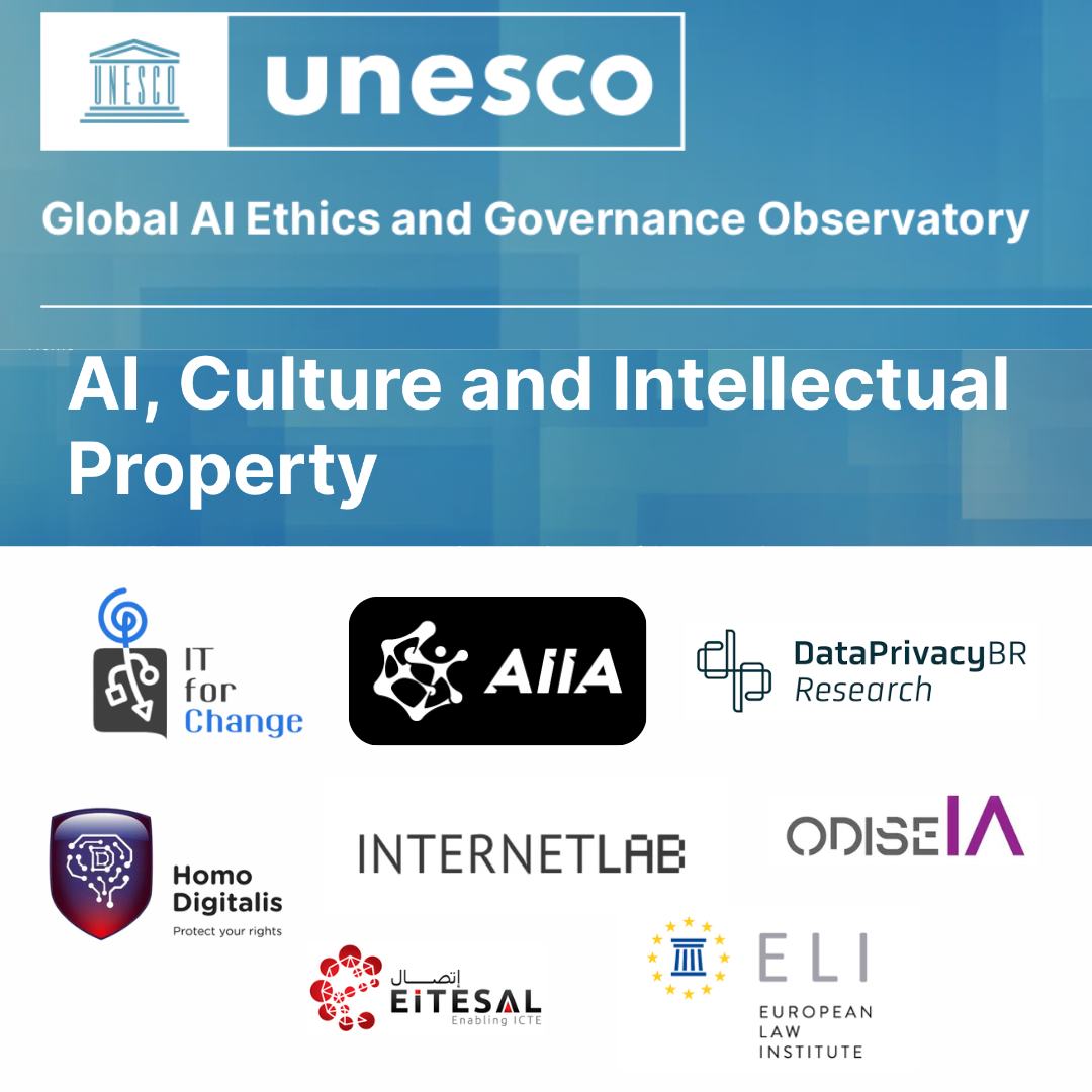 Στο πλαίσιο του Global AI Ethics and Governance Observatory της UNESCO, η Υποομάδα για την Τεχνητή Νοημοσύνη, τον Πολιτισμό και την Πνευματική Ιδιοκτησία έχει δημοσιεύσει ανοικτή πρόσκληση για συνεισφορές, με στόχο τον από κοινού σχεδιασμό ενός αποθετηρίου με επικεφαλής την κοινωνία των πολιτών, σχετικά με την Τεχνητή Νοημοσύνη, την Πνευματική Ιδιοκτησία και τον Πολιτισμό.