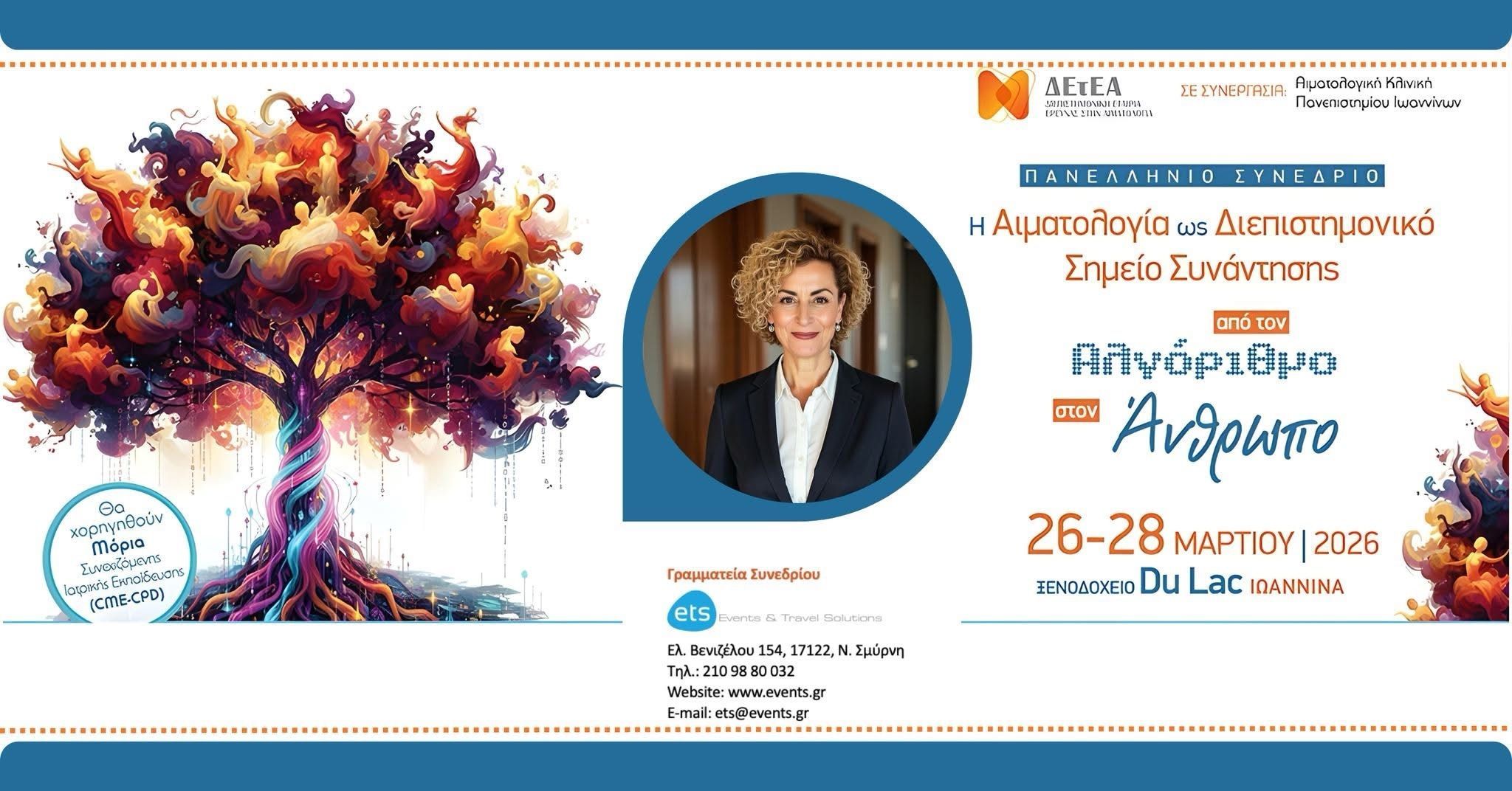 Τι σημαίνει να βάζεις τον Άνθρωπο πάνω από τον Αλγόριθμο; Αυτή η ερώτηση είναι ο πυρήνας του Πανελλήνιου Συνεδρίου «Η Αιματολογία ως Διεπιστημονικό Σημείο Συνάντησης: Από τον Αλγόριθμο στον Άνθρωπο», που διοργανώνει η Διεπιστημονική Εταιρία Έρευνας στην Αιματολογία στις 26–28 Μαρτίου 2026 στα Ιωάννινα!