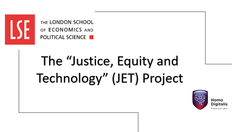 Homo Digitalis has the great honor and pleasure to take part in the project “Justice, Equity and Technology» (JET), which is housed within the he Department of Media and Communications at the London School of Economics and Political Science.